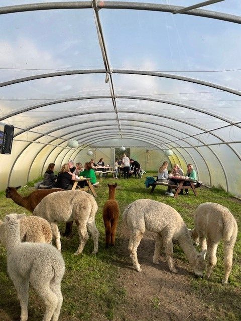 In de wat koudere maanden zitten we lekker binnen in een kas, daar zullen ook de alpaca's lekker om je heen lopen tijdens de high tea. Hierdoor kan je het hele jaar door genieten van een high tea met alpaca's.